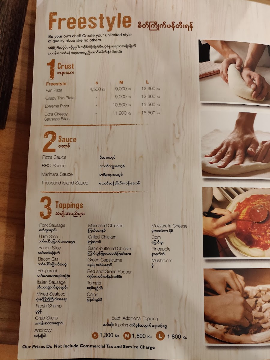For pasta enthusiasts, there are flavorful choices like the Stir Fried Pasta With Sausage In Thai Spicy Sauce, offering a spicy kick, or the ပင်လယ်စာထိုင်းစတိုင်အစပ်အရသာပါစတာ (a Thai-style seafood pasta).
