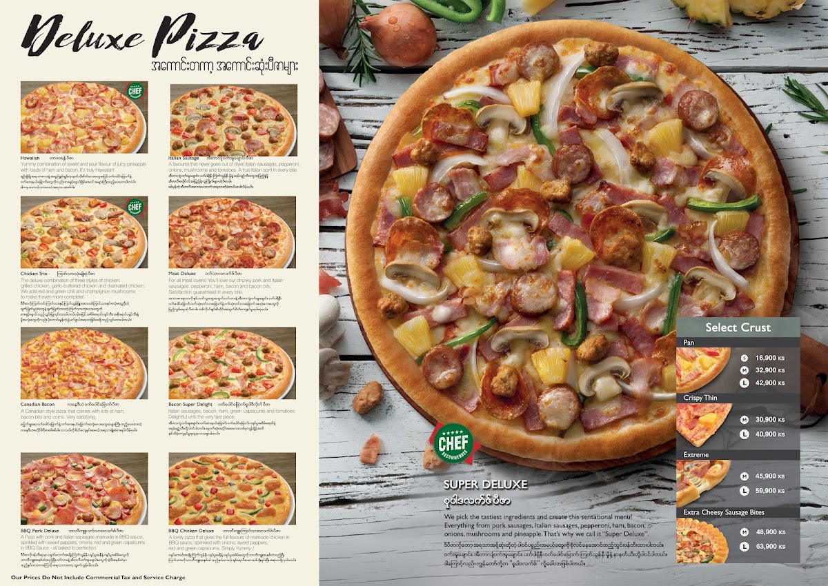 For those looking for something extra cheesy, the Extra Cheesy Sausage Bites (ECSB) pizzas are a must-try, with both medium and large sizes available, including flavors like ECSB Medium Deluxe Pizza and ECSB Large Seafood Pizza.